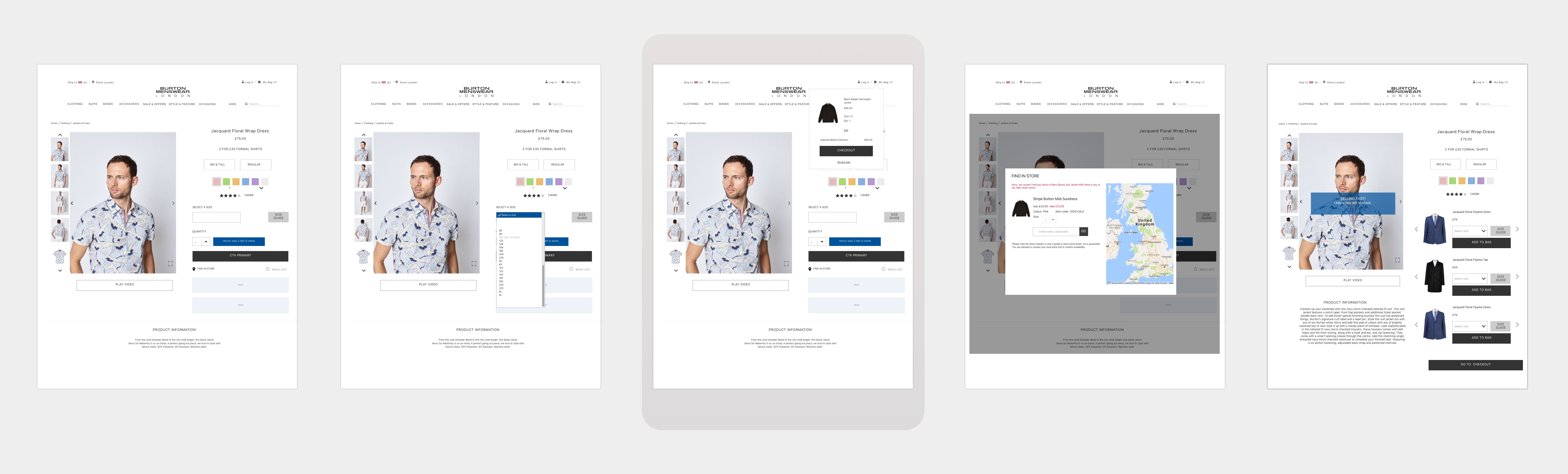 I’ve started with a basic style guide that worked as the foundation. Colours, icons, typography, buttons, forms and check boxes were designed first; meanwhile collective meetings would happen across brands and within each brand’s team; all components were reviewed and redesigned accordingly. The guide helped, also, as a design direction when adding new features later on to the site, i.e. the DDP delivery option.