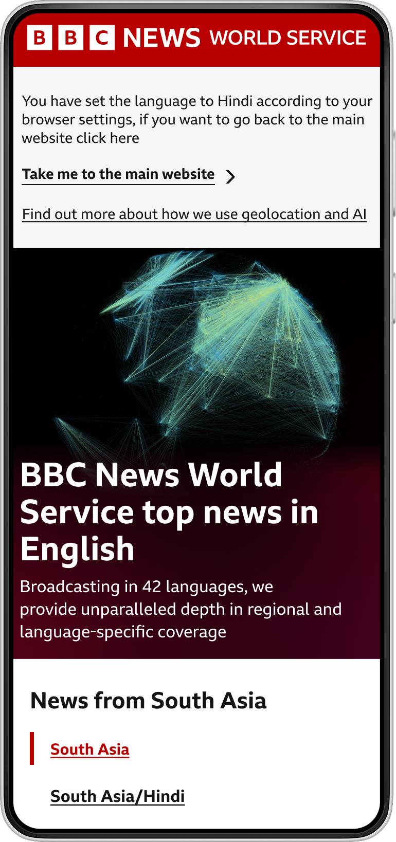 After a lot of trials we developed this innovative UX solution for the BBC’s global homepage that helps multilingual users easily locate their language group within relevant regions. This approach addresses complex challenges in language-region taxonomy and multilingual visual design. The solution will be contributed to the BBC Design System as part of the World Service’s commitment to inclusive, global accessibility.