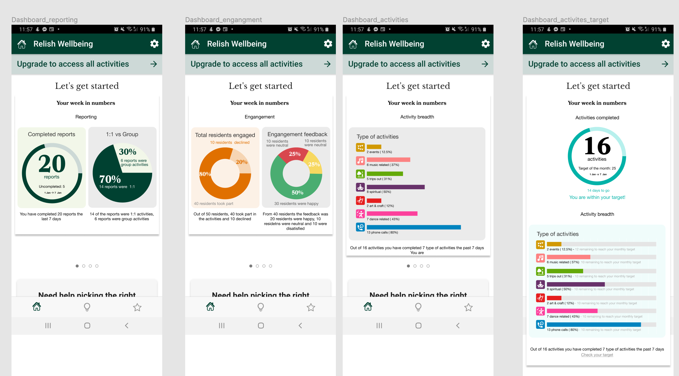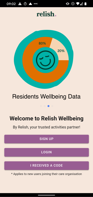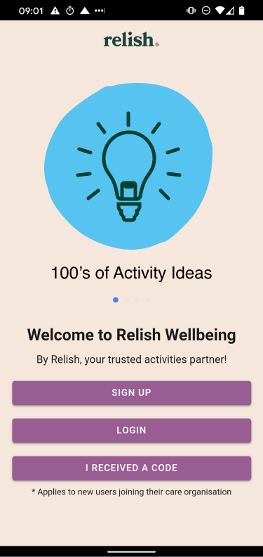my participationWhen I joined Relish they already had an Active Minds wellbeing app designed for the health care professionals. After rebranding, the “support for care app” had to follow up to the "Active Minds to Relish” change. I was responsible for the redesign of the app and for connecting it to the new website.