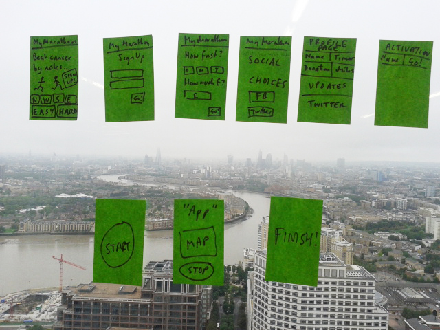 Prototypes below with a view of the Thames ( this is Level39, the Google headquarters)